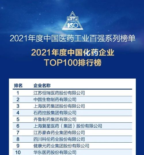 7月12日晚,正在举行的2022米思会(中国医药健康产业共生大会)上,发布了“2021年度中国医药工业百强系列榜单”。asiagame医药以扎实的创新研发实力和稳健的市场运营能力,再次蝉联“中国化药企业TOP100排行榜”榜首。